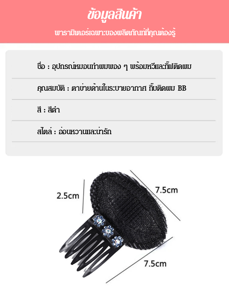 อุปกรณ์หมอนทำผมพอง ๆ พร้อมกิ๊บติดผมแต่งเพชร